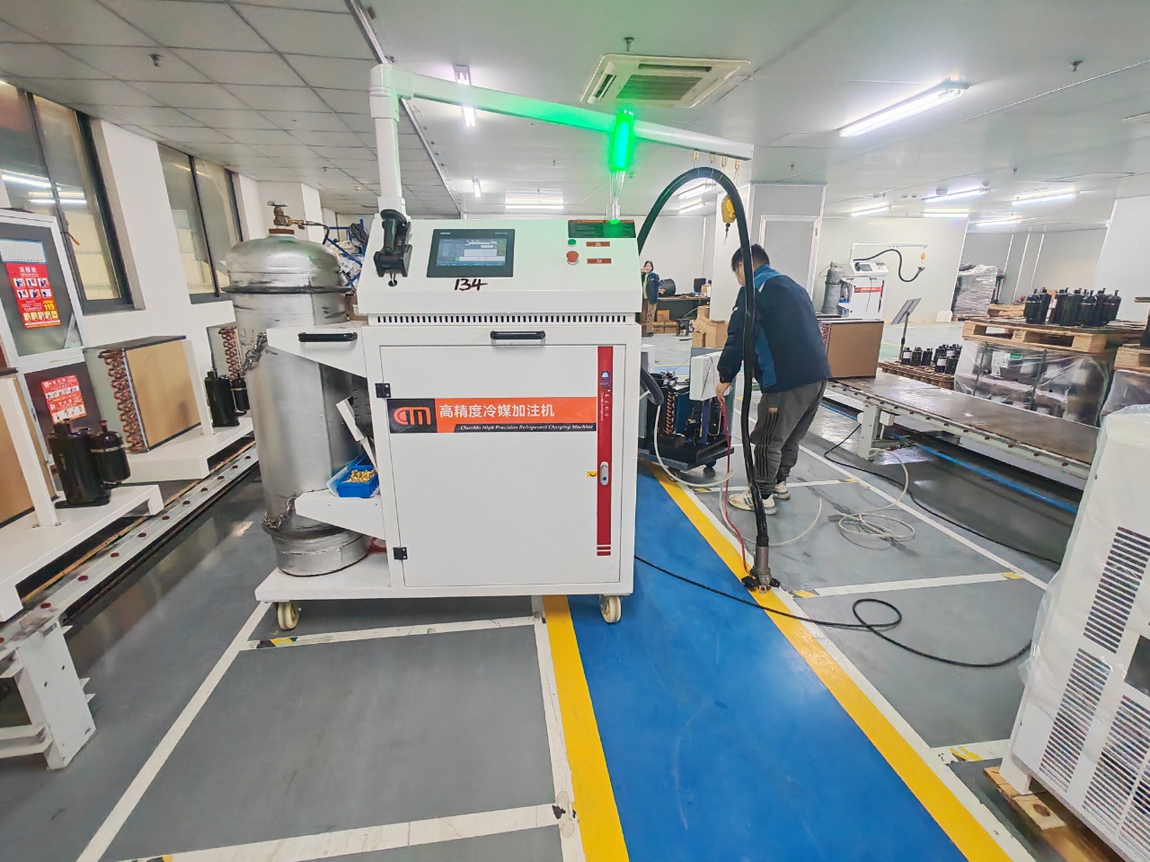 作为年产 5 万台冷干机的高新技术企业,盐城天尔机械在智能化升级中引入春木 CM8600 高精度冷媒加注机,为变频冷干机等核心产品的生产注入高效动能,大幅提升了装配线的精准度与产能。